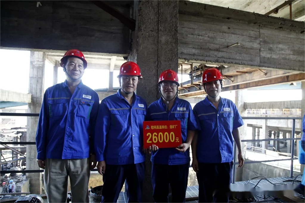 7月30日上午,礦業(yè)公司黨政領(lǐng)導(dǎo)班子分3組分別到選礦廠、露天礦、綜合保障部、技術(shù)中心、工程工區(qū)全尾充填等生產(chǎn)崗位慰問(wèn),為高溫堅(jiān)守崗位的員工送上礦泉水、飲料、毛巾、香皂等防暑禮包,共計(jì)520份。